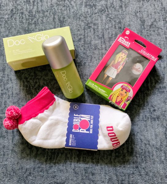 I LOVED the pink pom-pom socks, deodorant and the collectible Barbie Putt Buddies Divot Tool & Ball Marker.