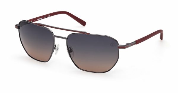Injected bio-based acetate sunglasses with a modern, sporty shape. The style is contemporary and attractive. Aesthetic elements on the temples define the brand identity through the logo and lines recalling the Timberland heritage.