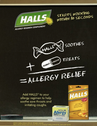 Wait – why the Halls? Because keeping a pack of Halls cough drops handy with it’s advanced Vapor Action can help with allergy related coughs and sore throats. PLUS, it helps with the first signs of stuffiness (at least it does for me).