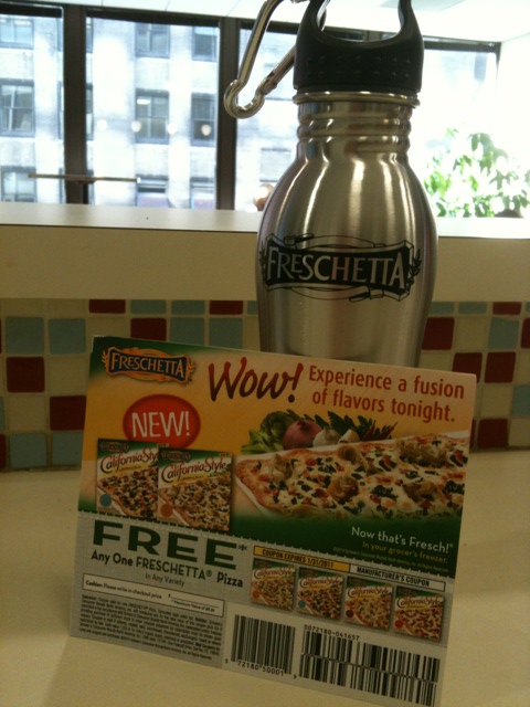 PLUS – Freschetta sent me coupons and water bottles like the one shown, so that I could try the pizza and SHARE some with my readers! If you’d like to win one this great combo for yourself…simply scroll down to the form and ENTER.