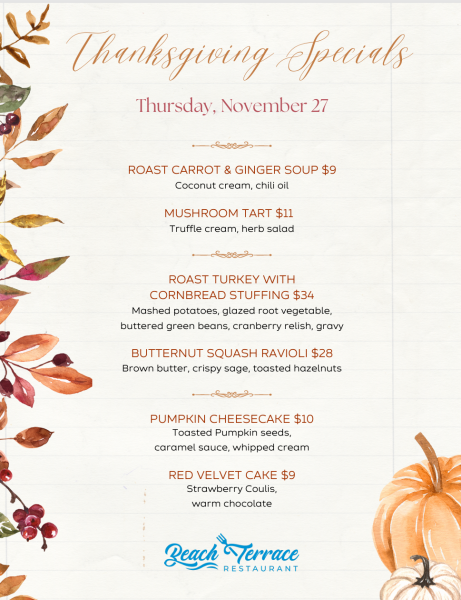 The vibe at Beach Terrace is casual-nice: perfect for families who want to be together without being stuck in the kitchen. You get the ocean breeze, the holiday flavors, and someone else does the dishes.