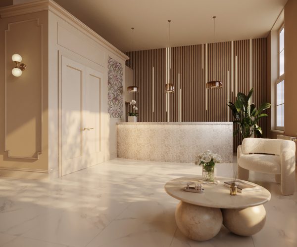 The welcome area of TREAT Medspa, a beauty and wellness concept, where aesthetics meets wellness and technology meets artistry in the heart of New York City’s iconic NoMad neighborhood.