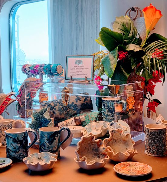 And here’s my favorite part: When you are in port, actual local artisans come aboard to sell their handmade wares. You pay them directly and not the ship, which means you’re supporting real craftspeople and bringing home something genuinely special. As someone who loves to shop and seeks out our authentic artisans when I go ashore, I was so excited to hear this. The stores throughout the ship (including the ones at The Bazaar) are absolutely fabulous. Yes, there is the usual Effy and upscale watches and handbags, but Xcel has its own section of merch in the Celebrity Flagship Store (check out the Celebrity museum while you’re there) with customizable items that can be engraved, embroidered, or printed, like water bottles, cocktail kits, keychains, caps, and robes. Plus, Celebrity Flagship will stock one-of-a-kind Celebrity products that are only available on Celebrity Xcel.