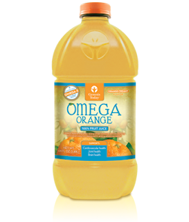 “We’ve taken all that’s good about orange juice, added a splash of creamy orange flavor, and made it even better with heart-friendly DHA omega-3 fatty acids in every serving. Plus, we’ve strengthened this juice with vitamins and minerals and smoothed out the “acid burn” taste you get from most of the orange juices on the shelf today. Find it in the refrigerated section in the Dairy/Orange Juice aisle.”