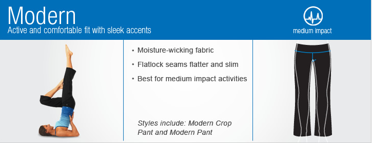 Of course if I were doing some walking or using the elliptical trainer, I prefer the Modern Collection. It’s got that great comforable fit and the pants come both in crop length as well as full length – including a SHORT length for women like me (I’m 5’1″).