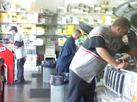My oil change at Jiffy Lube took all of 15 minutes (not even enough time to go through all of the e-mails on my phone as I waited). My car was WAY on the other side of the garage (it’s the guy in the blue shirt working on Hal), but after changing the oil, they went over everything that they did and brought out my air filter to show me that it was in good shape. I was ready for the “hard sell” on a filter, but they were honest and SHOWED me that it was fine.