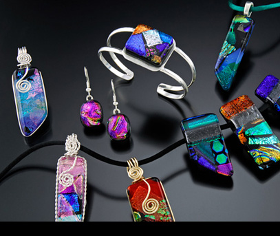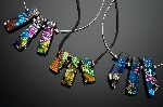 So, what has this got to do with NGlasswork’s Dichroic Glass Jewelry? “NGlassworks combines Dichroic, iridescent and sheet glass to create one of a kind art glass jewelry.” and it’s very different. By layering glass, artisan Nancy Giere is able to create one of a kind pendants, fan necklaces, earring, rings and bracelets that are unique pieces of art that you can wear.
