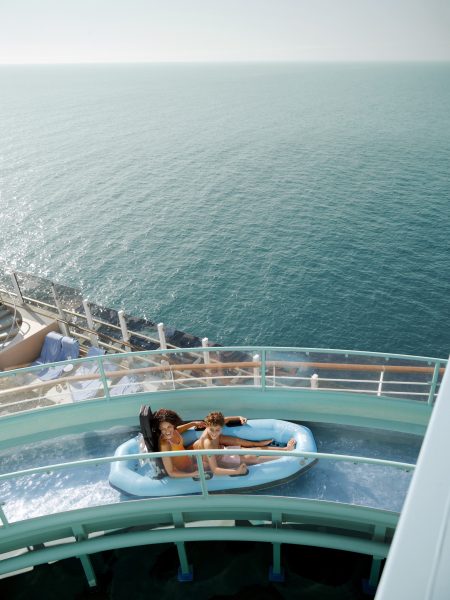 Bear in mind that this thing is the longest and fastest slide at sea, complete with dual racing slides and a magnetic lift that launches you upward before you even have time to question your life choices.