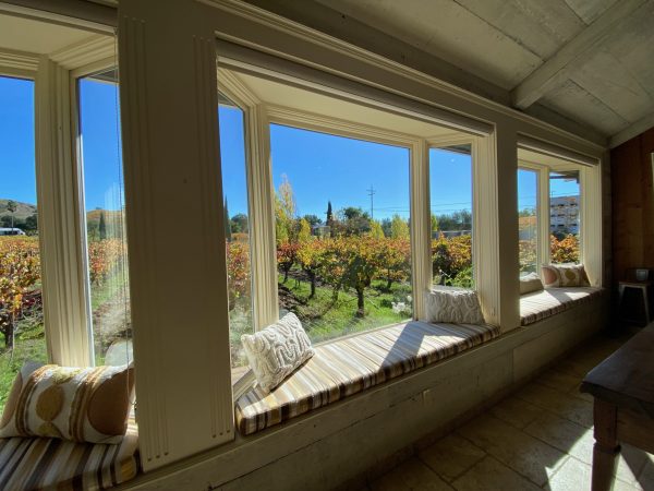 Inside, window seats yield to crimson, yellow, and pumpkin orange views of undulating vineyards. In winter, you can sit outside under a gazebo and toast to the views while keeping warm. Bringing your own picnic while tasting is fine. Kids and dogs are welcome, too. For future reference, you can rent one of the houses on the property and swim in the pool that’s shaped like a wine bottle.
