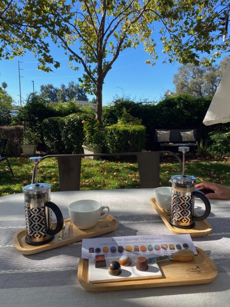 The day we came, the chocolate bonbon tasting of four treats and a French press coffee was the way to go. On seasonal weekends, guests can partake in an exquisite afternoon tea. Around the holidays, regulars vie for Fleur Sauvage chocolate Advent calendars.