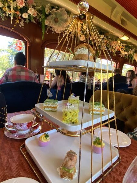This time, I was curious about how servers would handle pouring hot tea on a moving train. Let me tell you, they did it with ease, not spilling one drop outside my floral tea cup.