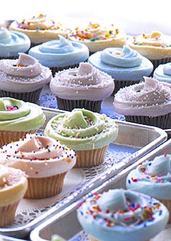 Tired of eating the food at the hotel while at BlogHer? Is your sweet tooth acting up YET AGAIN? The urge has hit and there’s NOTHING that you can do other than to GIVE IN. So, what do you do, where do you go when you’re in NY for the first time and need a nosh of moist cake with sweet, delicious frosting on top? You head over to one of the many CUPCAKE bakeries around the city and INDULGE.