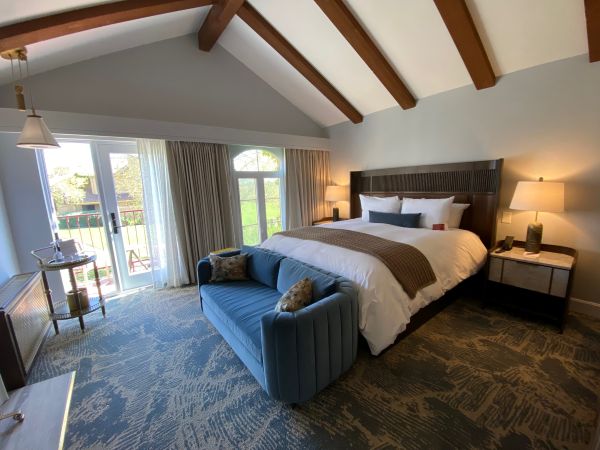 Today, the 78-room boutique hotel is on a mission to tell its story after a $15 million-plus renovation. Under new ownership, where the Jackson family of Kendall-Jackson Wines is a partner, the 92-acre property is a serene hideaway amid postcard-worthy vineyards. Wrought iron balconies, spiral topiaries, plus winding brick pathways unfold as you step onto the grounds. Plantings are a botanist’s dream with periwinkle beds, Japanese maples, agapanthus, seasonal tulips, and more. Water songs from gurgling fountains drown out freeway rumble. A major perk is free access and tastings at three wineries