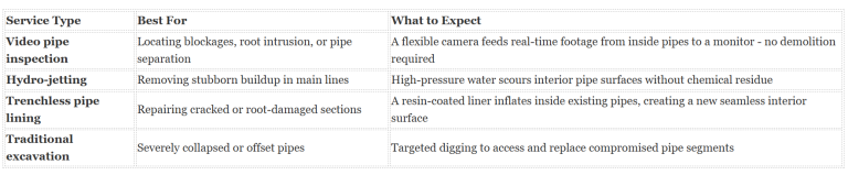 When DIY methods reach their limits, knowing what legitimate service options exist helps you navigate consultations with confidence. Canadian plumbing professionals typically offer tiered diagnostic and remediation approaches – each suited to specific problem types. Familiarity with these methods ensures you can ask informed questions and recognize appropriate recommendations versus unnecessary upselling.